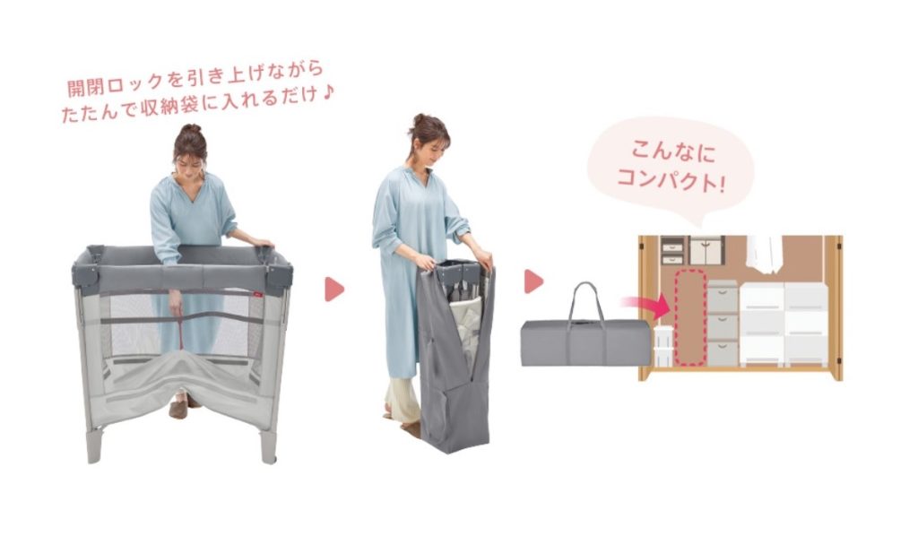 置き場が狭くても、このベビーベッドなら置けるかも知れません。