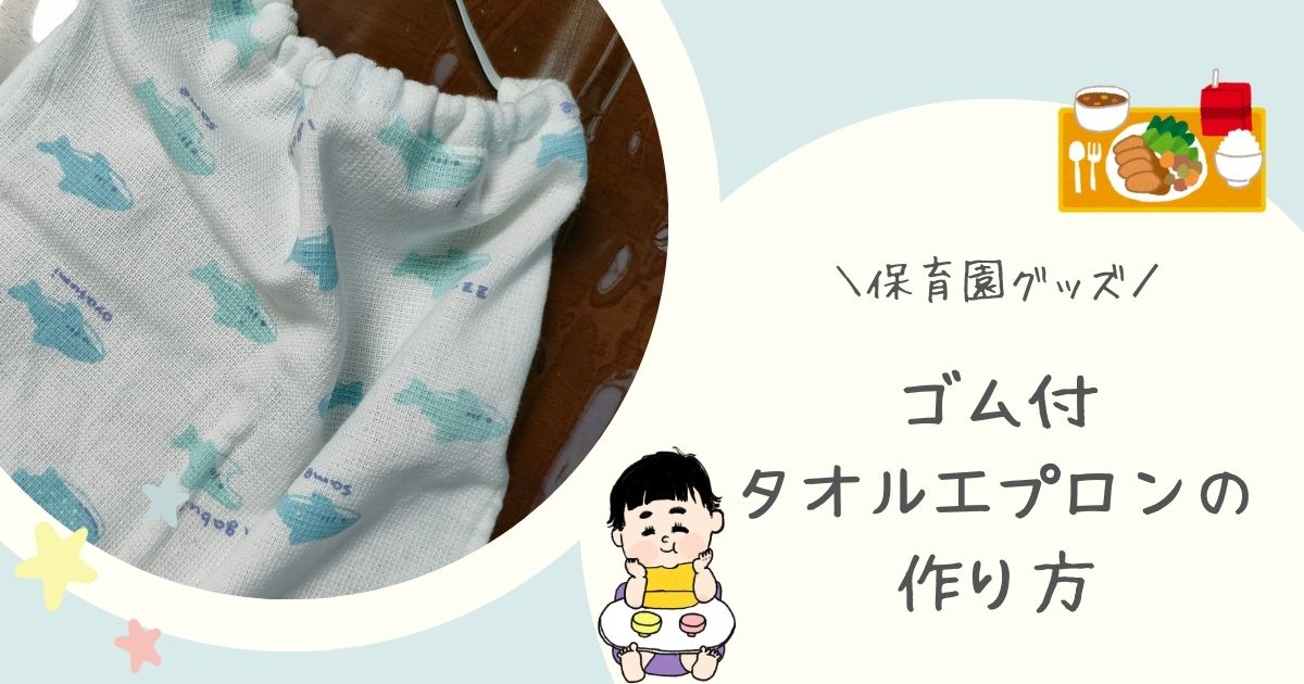 保育園から「ゴム付きのタオルエプロンを何枚か用意してください」と言われて、どうしよう?と悩むママも多いはず。