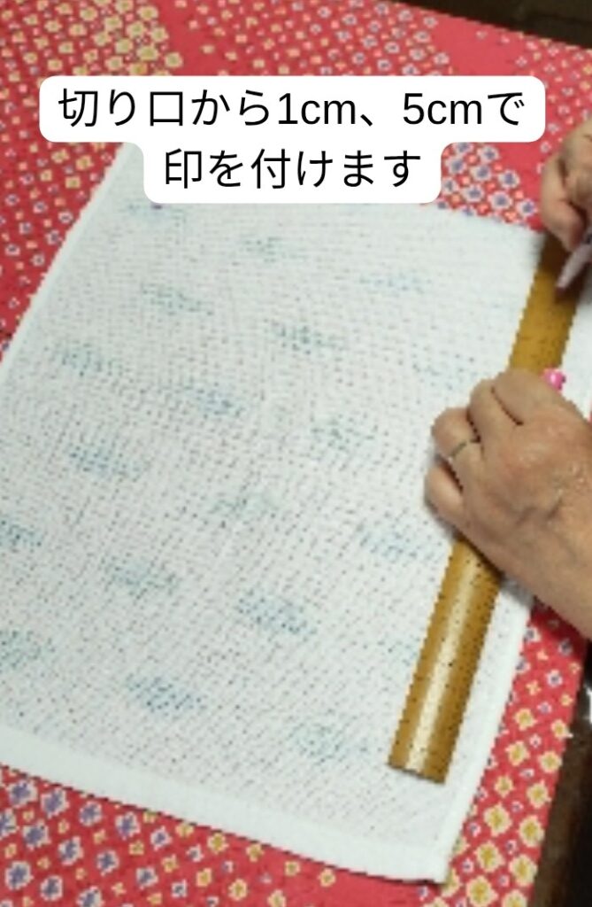 切り口から1cm、次いで5cmのところで印をつけます。